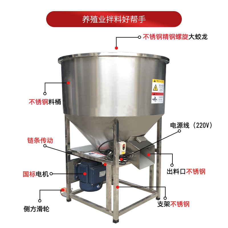 Middle Fishing Tech Feed Mixer Breeding Small Grain Feed Machine 220v Thickened Stainless Steel Mixed Material Mixing Machine