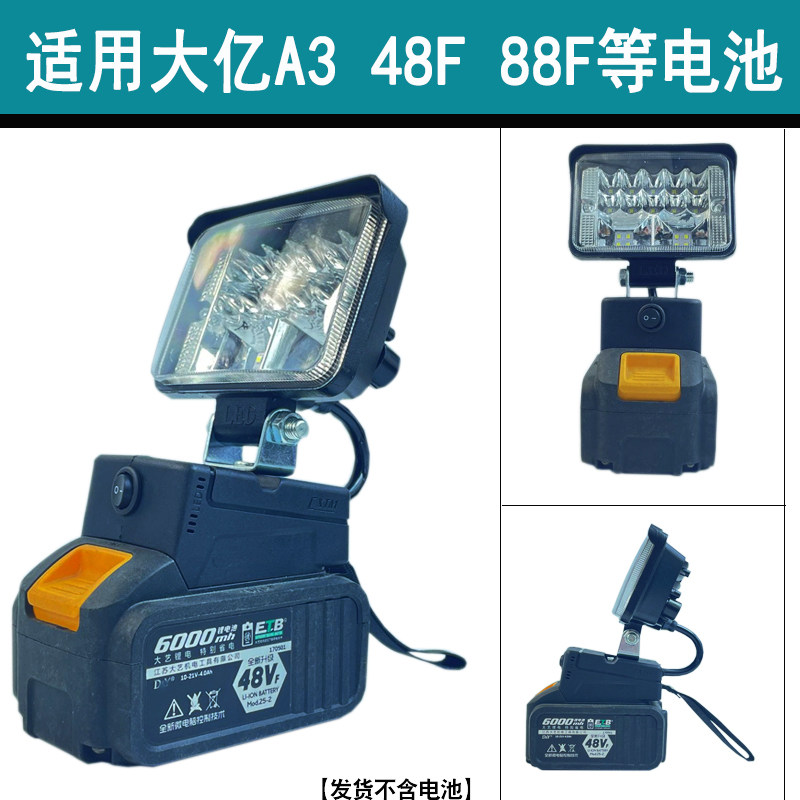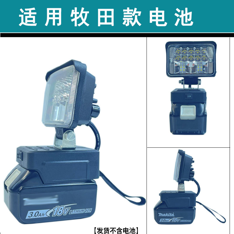 Applicable Makita battery work light applicable Dayi 48F 88F A3 battery work lamp applicable Dayi A6 battery work lamp applicable To Dongcheng 18V battery work lamp applicable To Dongcheng 20V battery work lamp Makita model set (work lamp + charging treasure) Dayi A3 set (work lamp + charging treasure) Dayi A6 set (work lamp + charging treasure) Dongcheng 18V set (work lamp + charging treasure) Dongcheng 20V set (work lamp + charging treasure) If it is not clear what battery contact customer service lamp does not contain display battery