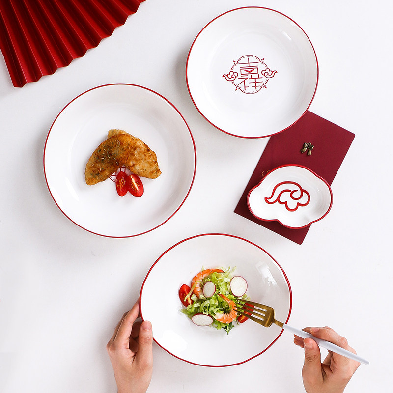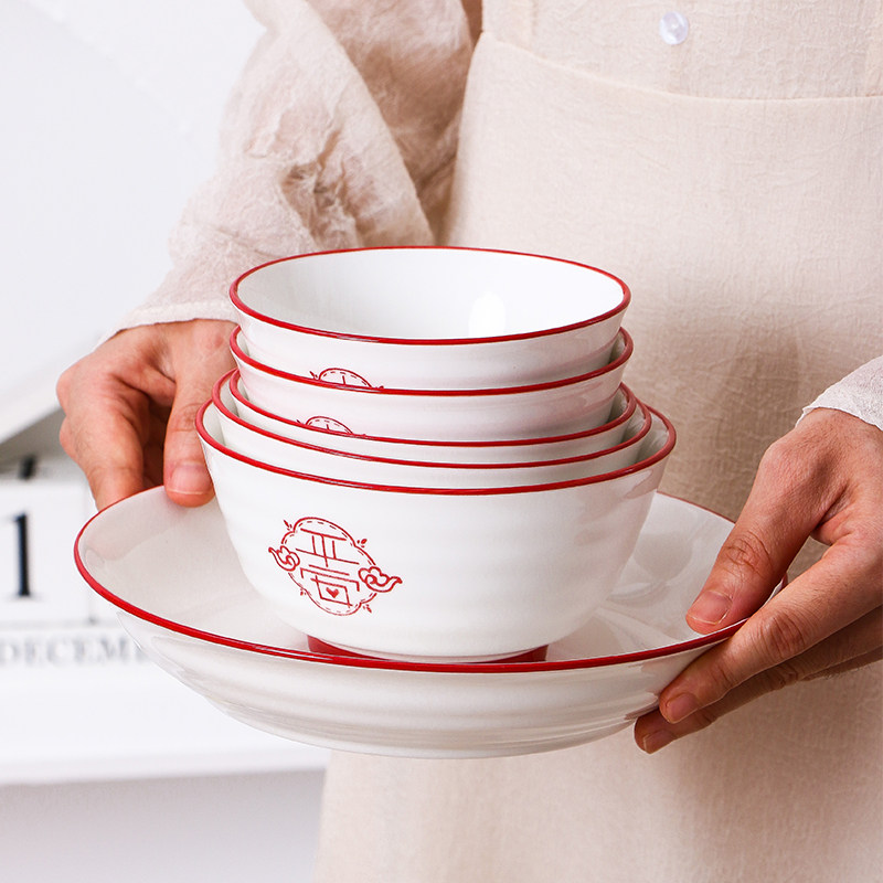 Jixiang Sanbao underglaze Chinese ceramic dishes and tableware wedding housewarming festive bowl set gift home
