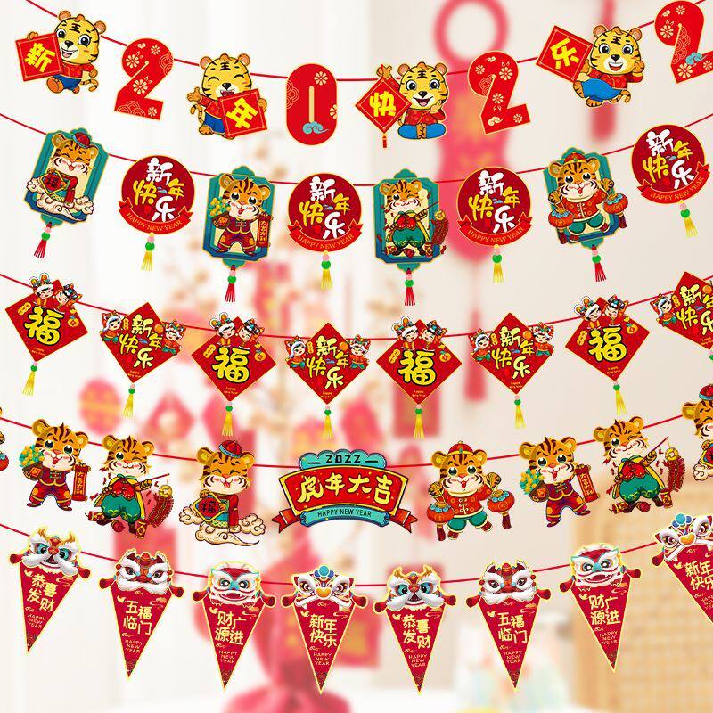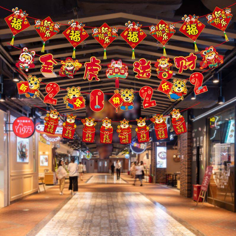 New Year's Day decorations shopping mall layout Year of the Tiger pendant ornaments Spring Festival New Year's Day blessing word pull flower pull flag 2022