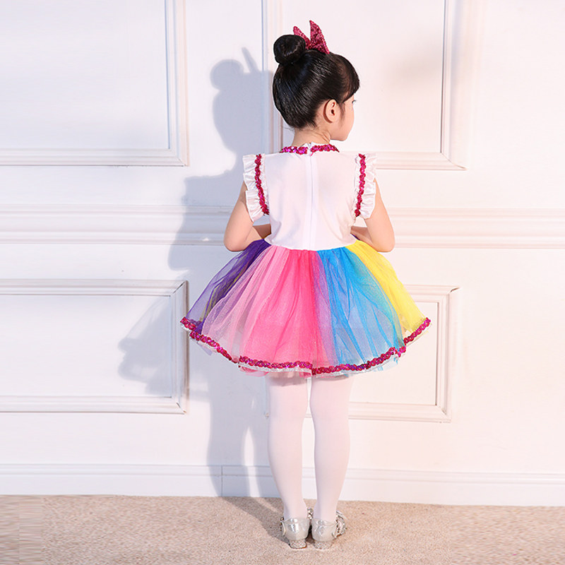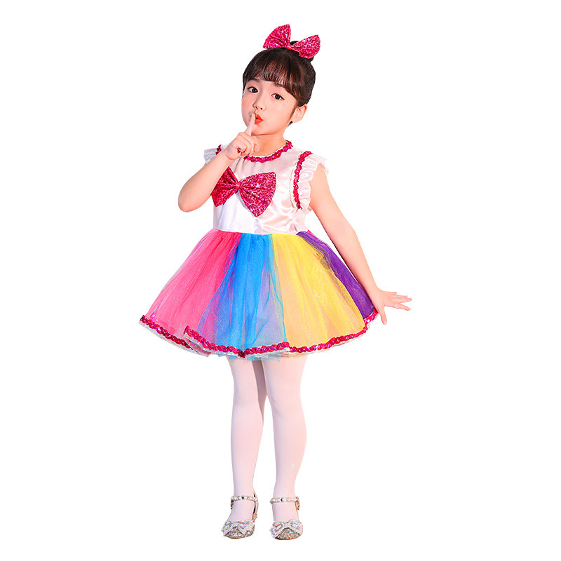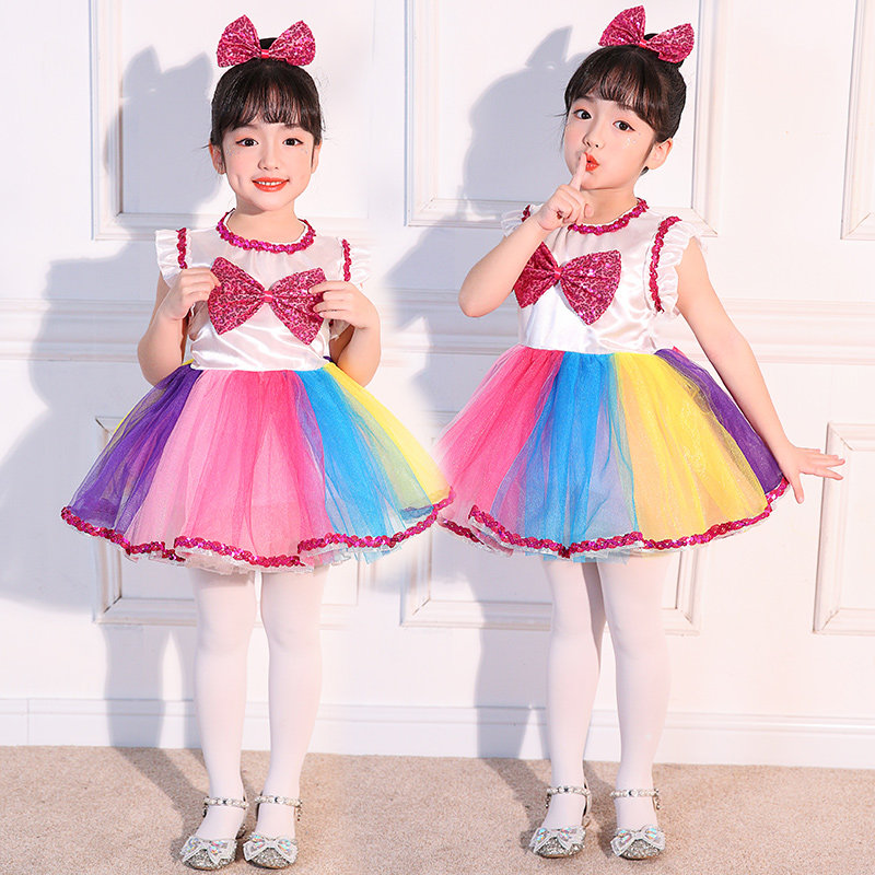 61 children acting out of a fluffy skirt Early childhood modern dance performance Girl Sequin Cute Seven Colorful Princess Dress