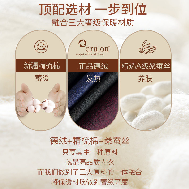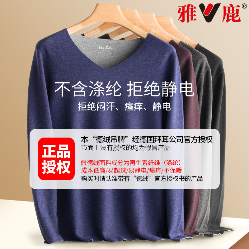 Yose men's duvet fever clothes men's mulberry silk without marks V collar thermostatic autumn clothes sanitary pants suit beating bottom winter