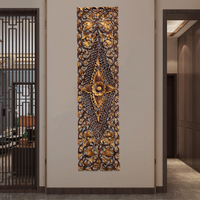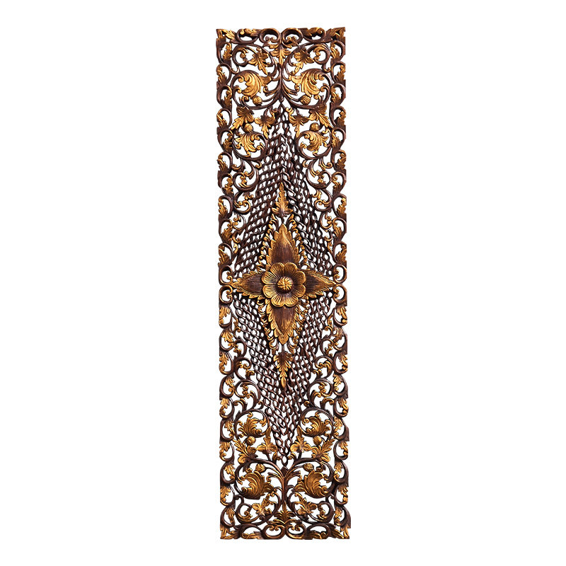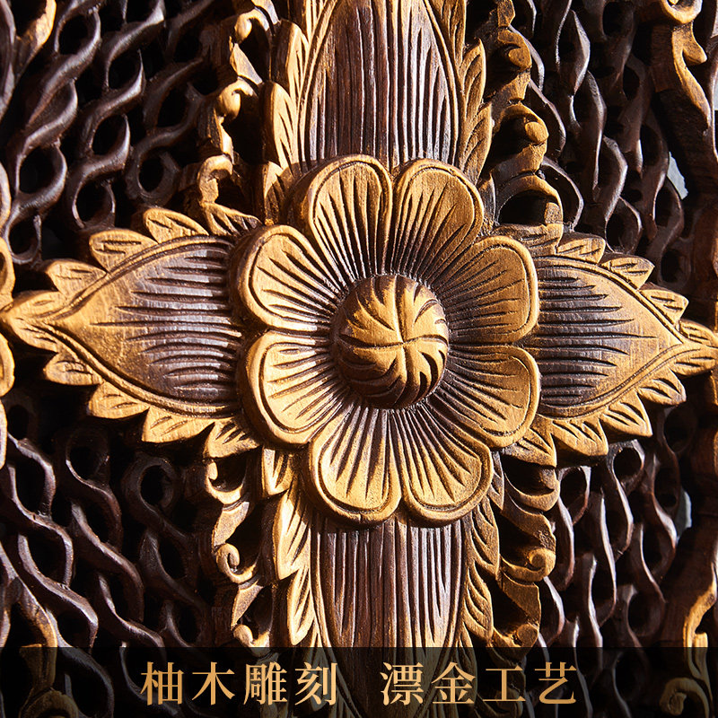 Tai Domain Thai Teak Teak Wood Lotus Hand-carved Flower Board Wall Decoration Southeast Asia Dining Room Genguan Wall Decoration Horizontal Vertical Version Pendant