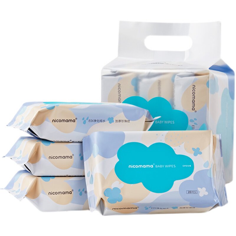 nicomama baby hand-mouth wet towel portable package 20 draw 3 packs pure water thickened towel