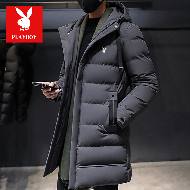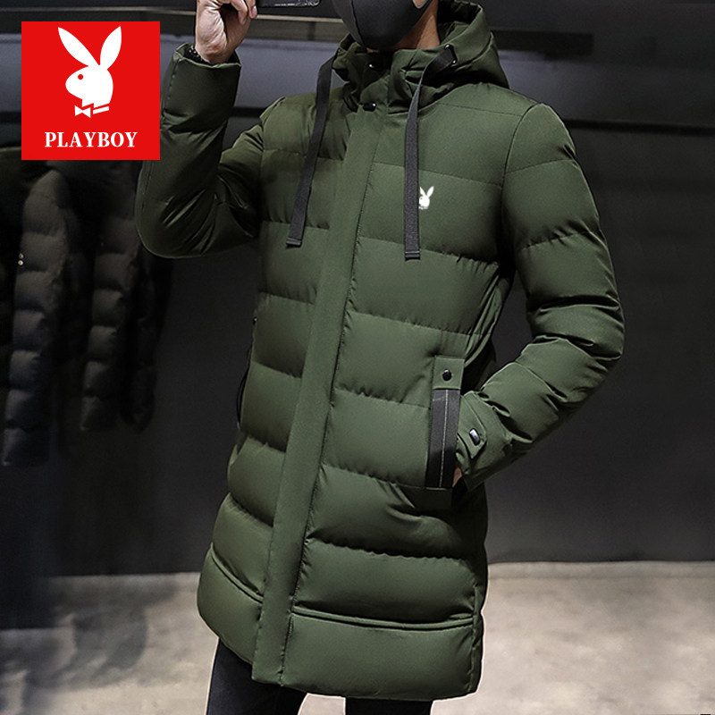 Playboy winter down jacket men's 2021 new thickened mid-length hooded jacket cotton jacket men's cotton jacket