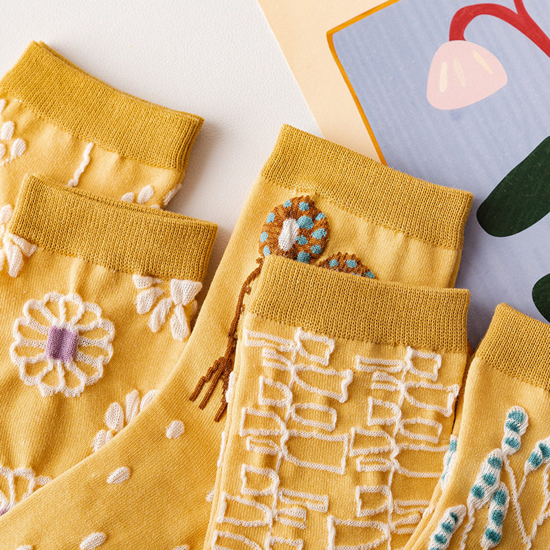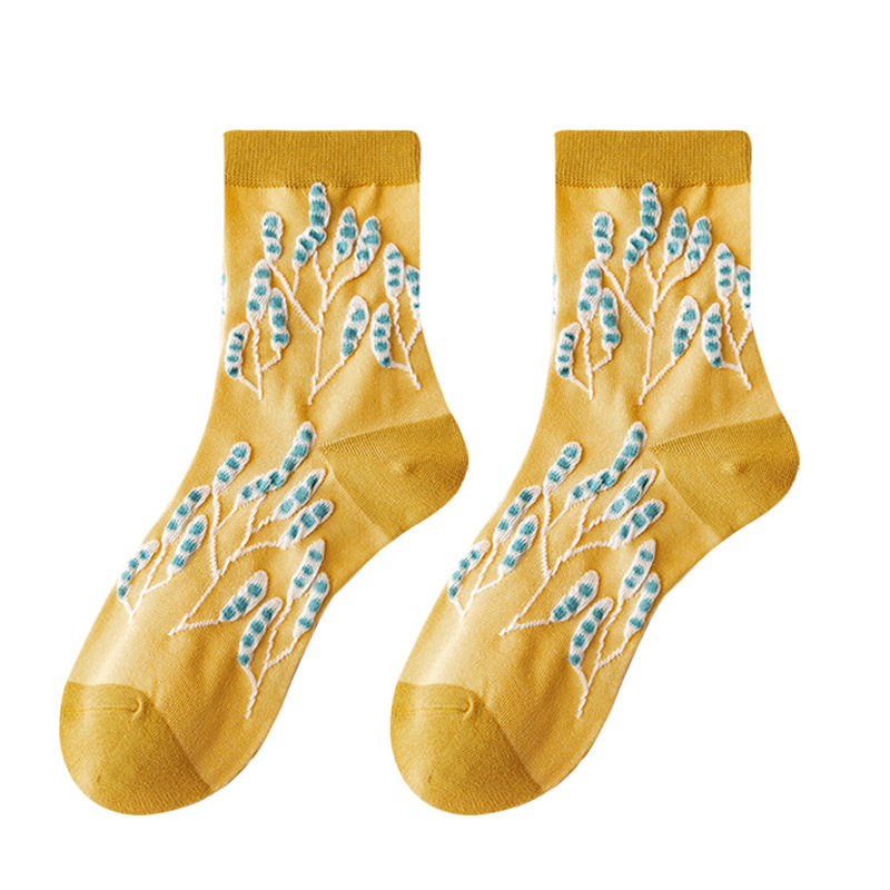 kiki little Terry socks women's mid-tube autumn and winter personality college style Japanese cute student high tube yellow cotton socks