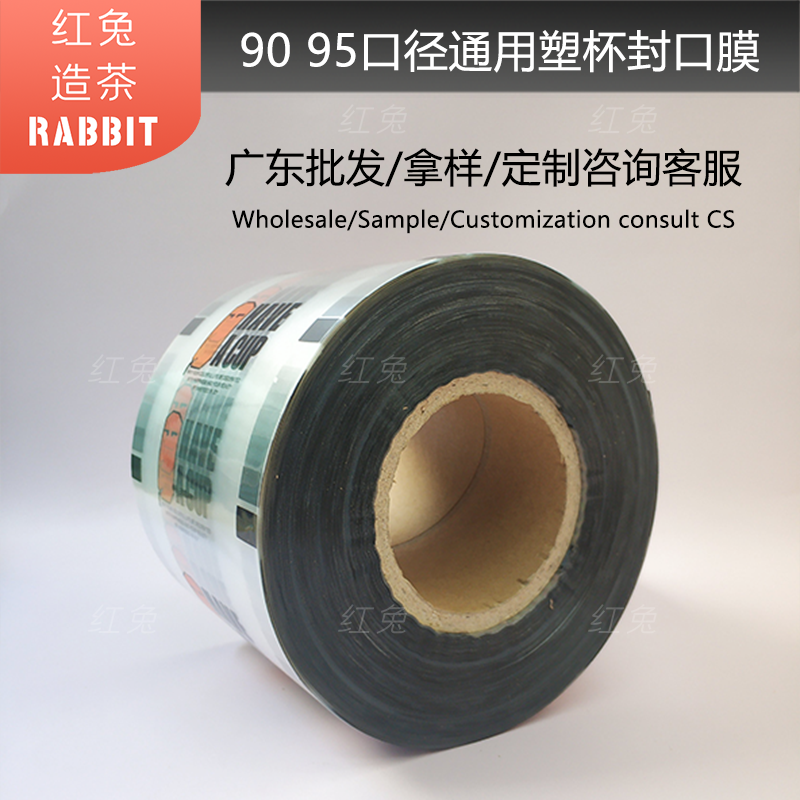 Universal plastic cup sealing film English transparent 9095 caliber soy milk milk tea cup delivery leak-proof sealing cup film customized
