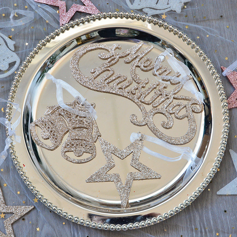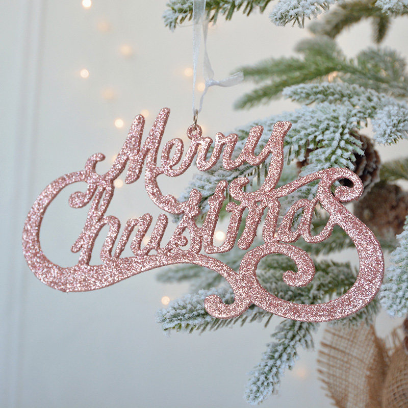 SwanLace sequins pink gold crystal white glitter hollow out English alphabet card Christmas tree listing pendant pendant