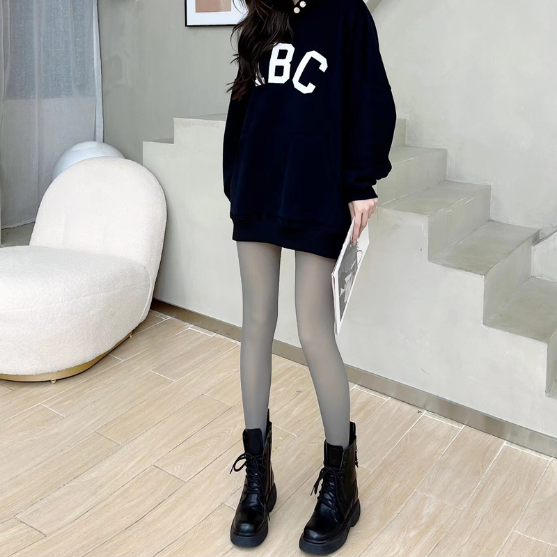 JUSTCC Kaka women's official flagship does not hook silk plus velvet black stockings goddess pants stewardess socks trousers