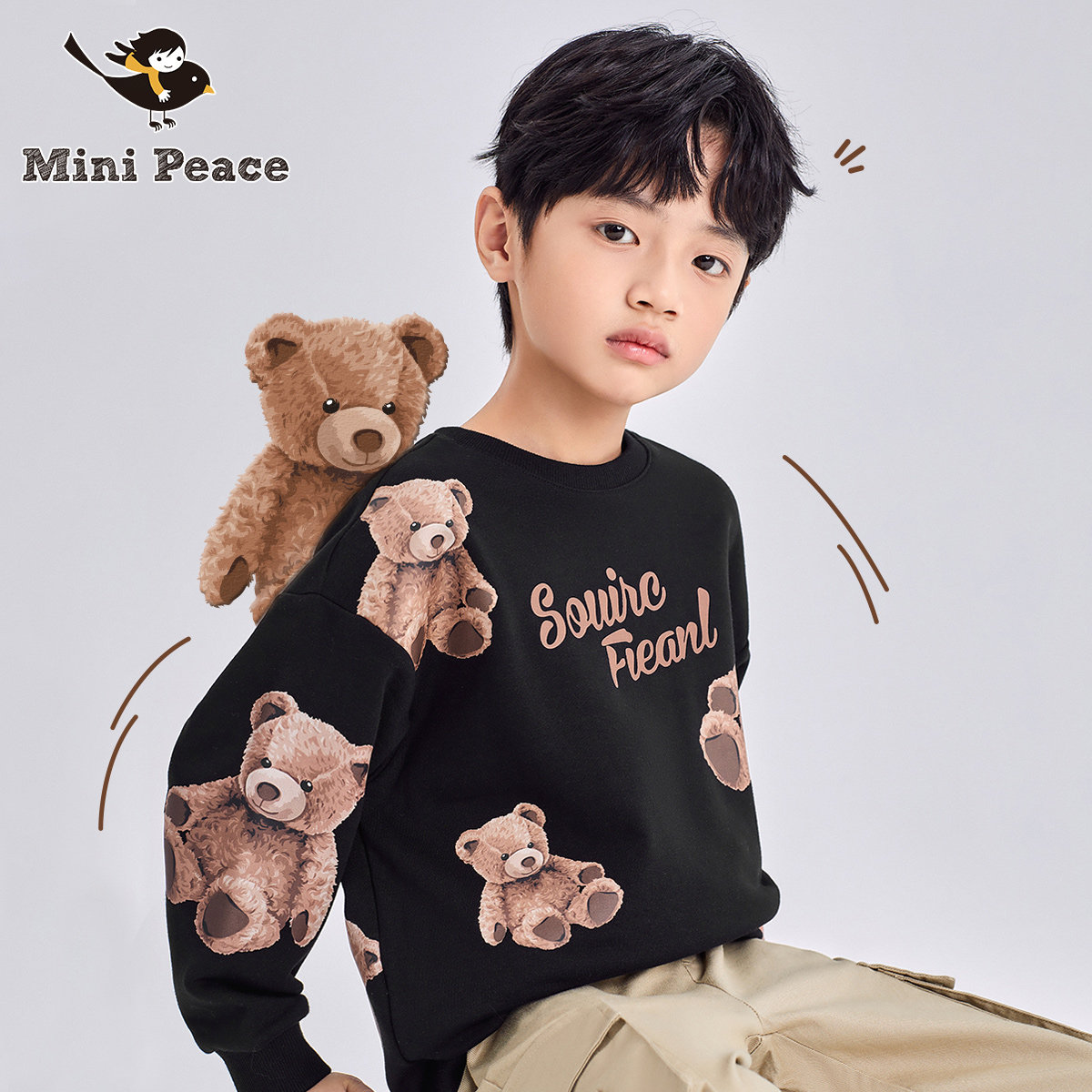 minipeace Taiping bird boy clothing small bear children's necropolis 2022 spring new foreign boy's round collar blouses