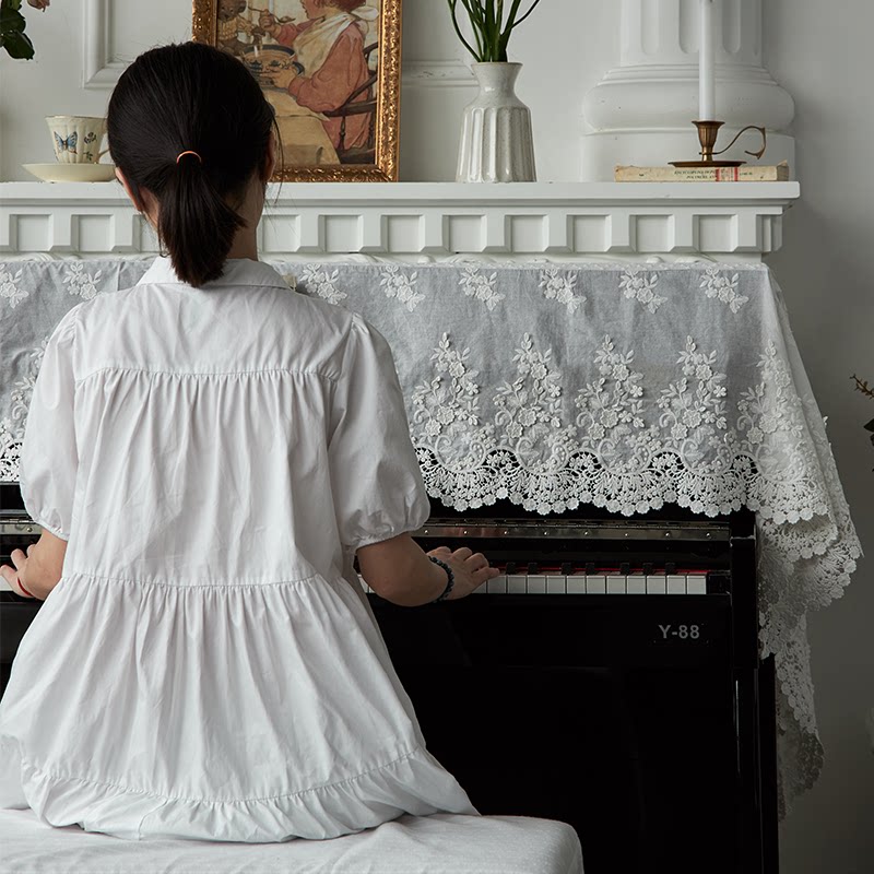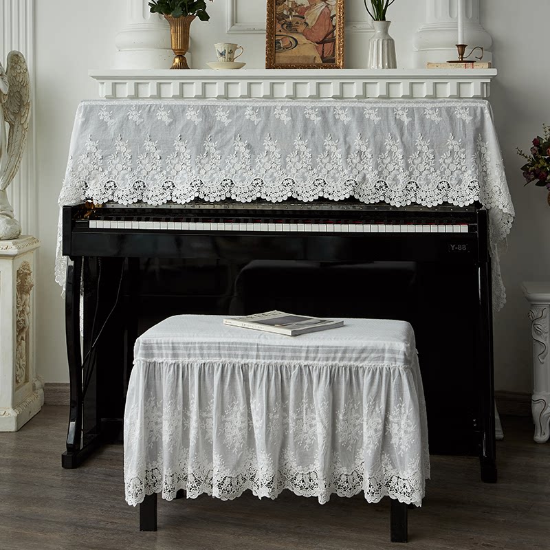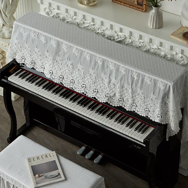 White French lace piano cover modern minimalist half cover new piano full cover towel light luxury high-end piano stool