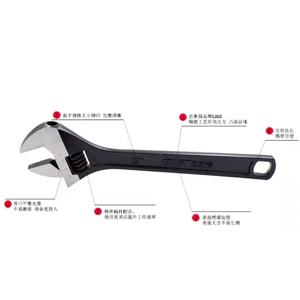 High carbon steel 8 inch adjustable wrench 24mm open high carbon steel 10 inch adjustable wrench 30mm open high carbon steel 12 inch adjustable wrench 35mm open high carbon steel 6 inch adjustable wrench 19mm