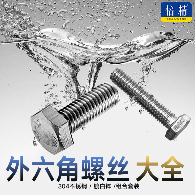 Outer hex screw M5M6M8*20 25 30 35-150 galvanized white 304 stainless steel hex bolt
