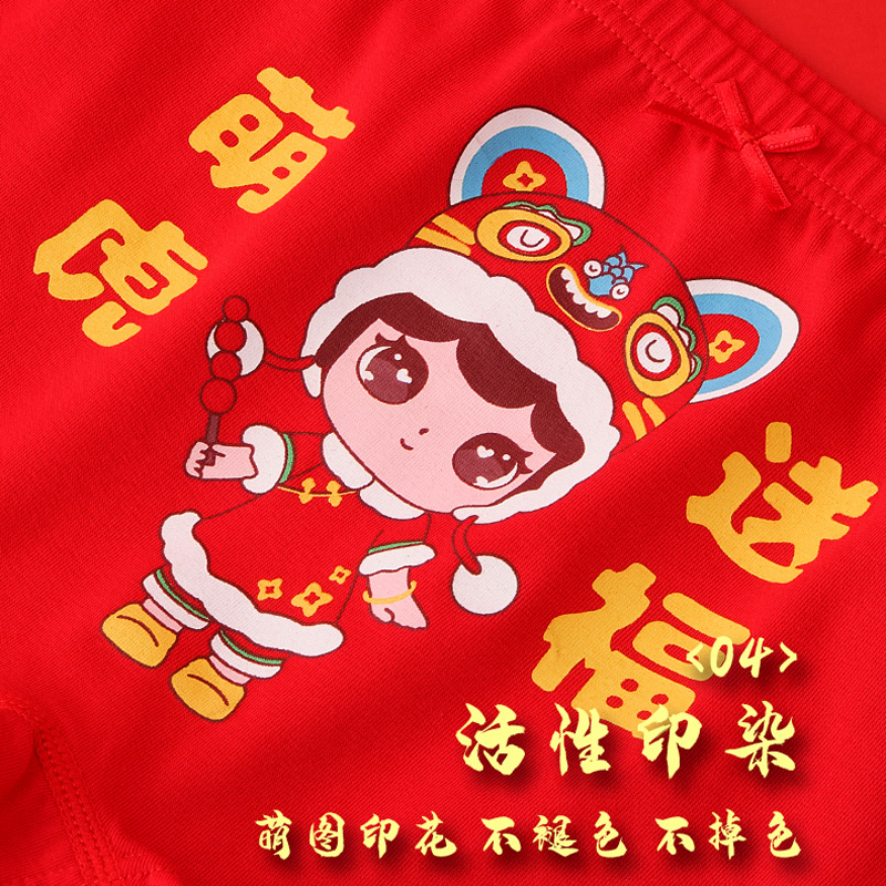 Girl Pants Red Ben Year Child Bull Year Pure Cotton Flat Corner Shorts Tiger Year Middle School Boy Girl 12 years old