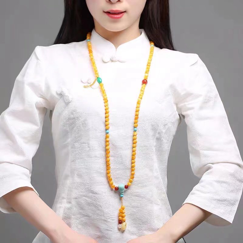 Original natural amber beeswax chicken oil yellow 108 bracelets multi-circle necklace raw ore old beeswax bracelet beads