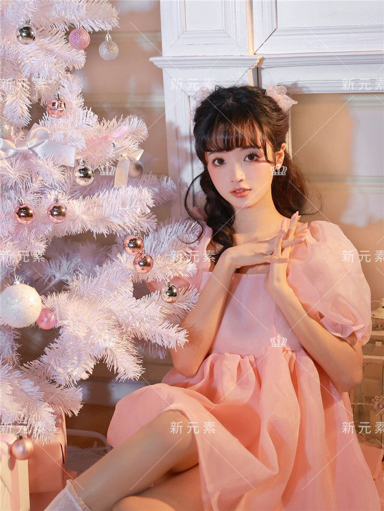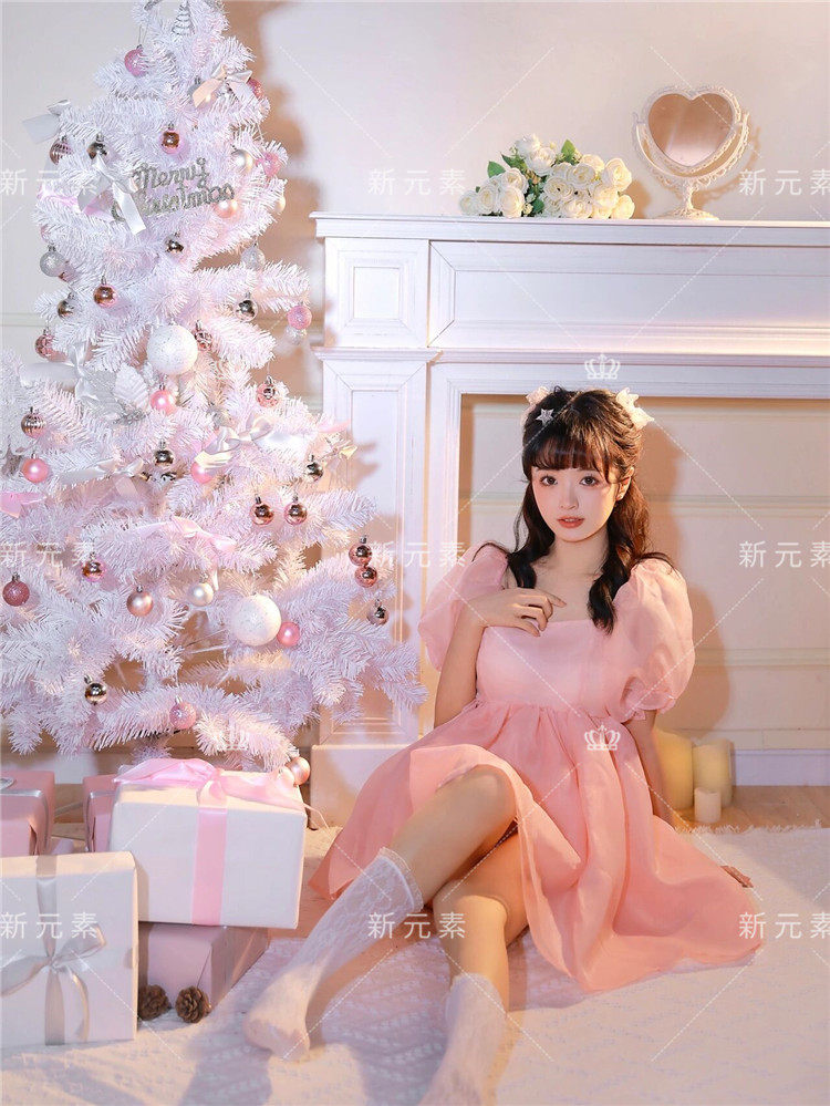 New Christmas Write True Apparel Women's Day Department sweet and cute Wind Girl Bubble Bubble Dress Annual Conference Party Performance Photoshoot-Taobao