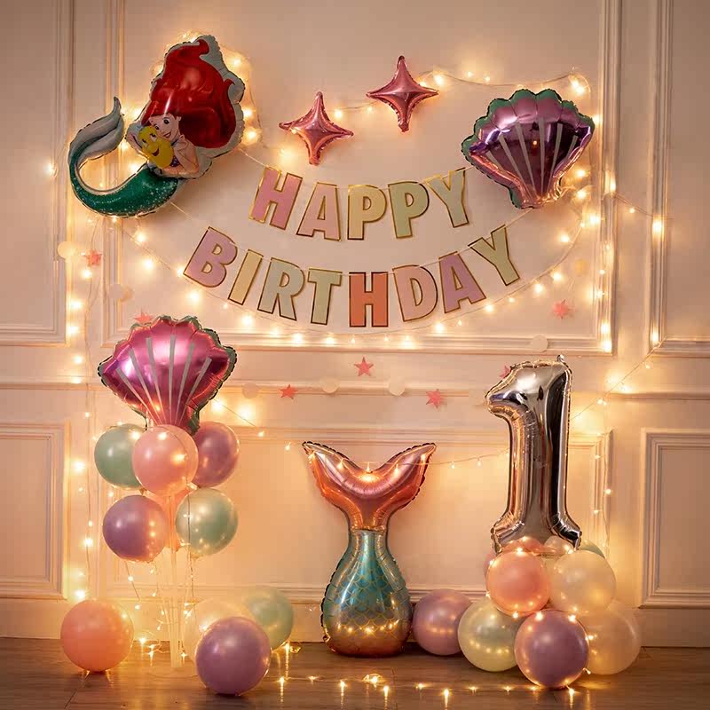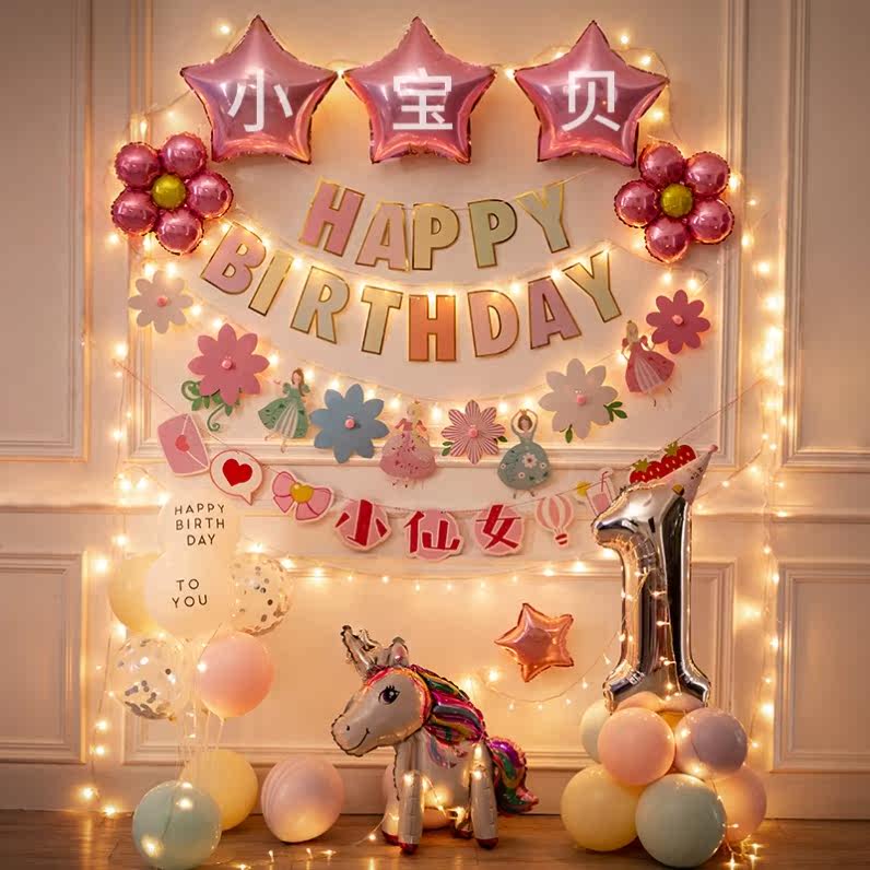 100-year-old banquet arranged for children's birthday decoration items Scene light extravagant ten-year-old girl over birthday party background wall