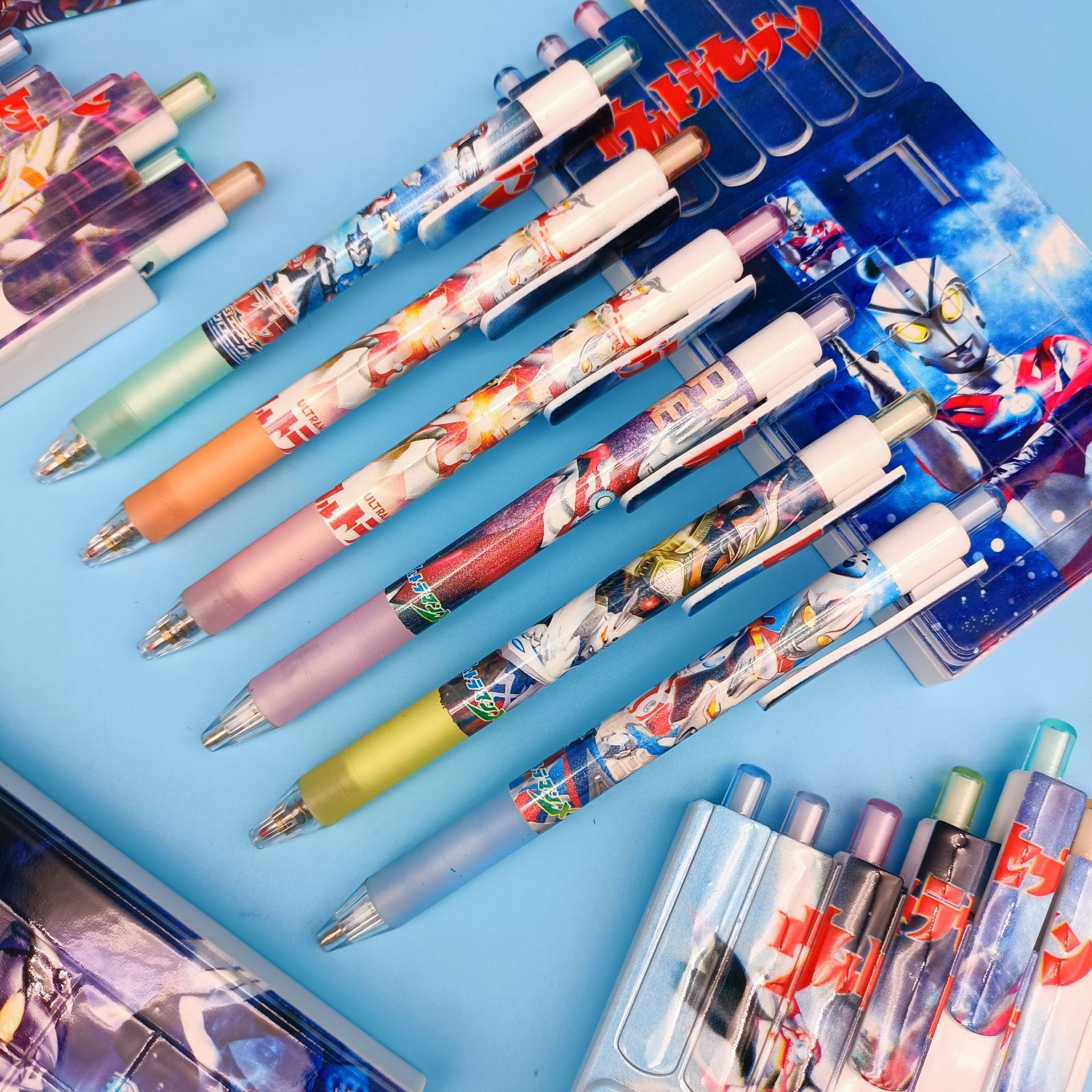 Ultraman Mobile Puzzle Pen Set Boys INS Cartoon Sero Cosmic Hero Net Red Color Pen Automatic Pencil Combination Set Student Dedicated Press Type 0 5mm Water Pen Black High Value