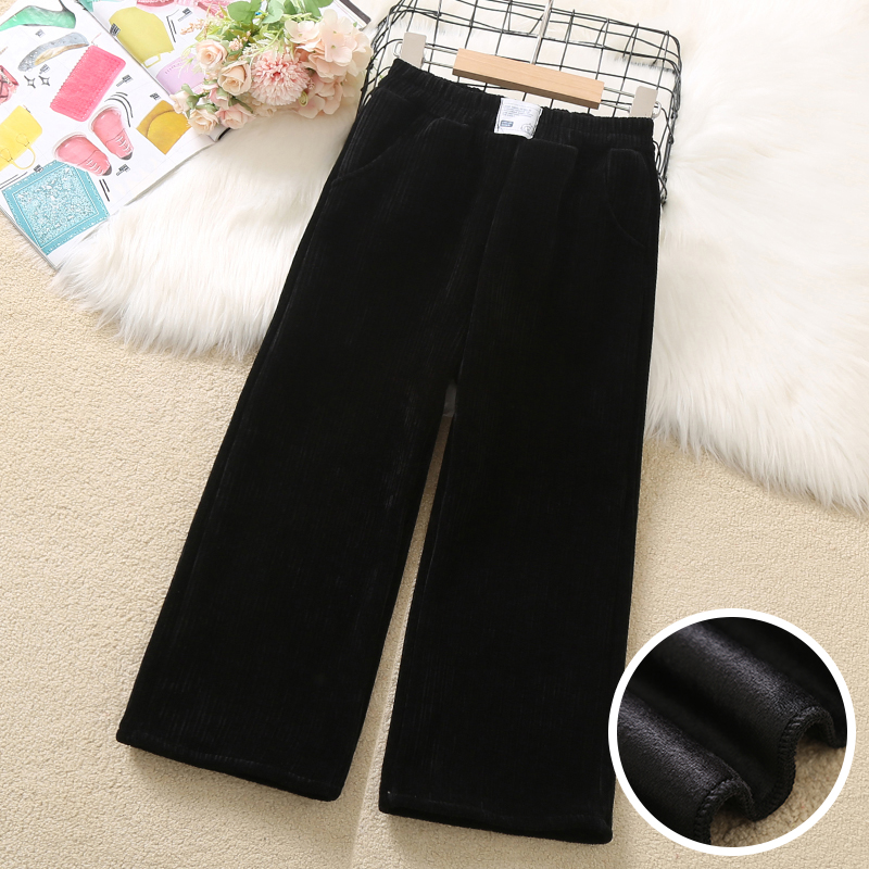 Girl Pants Autumn Winter Style Foreign Air Great Boy Girl Chenille Gill Suede Thickened Straight Drum Pants Children Casual Broadlegged Pants-Taobao