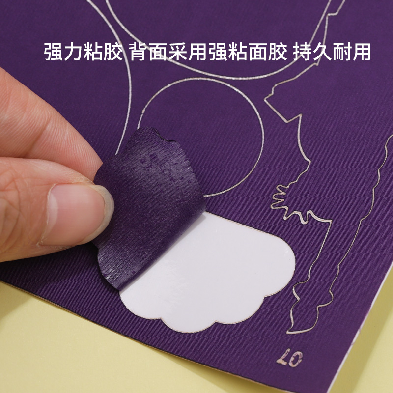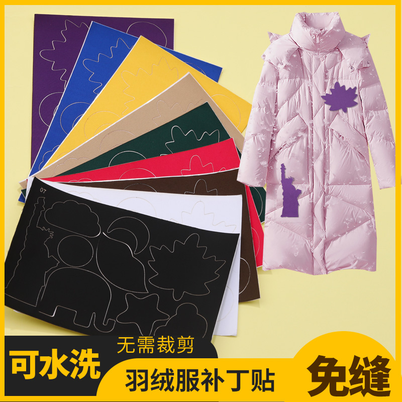 Cut-free self-adhesive card Tunb with a broken hole sticking out of the hole, a cloth appliqua pants trim with a broken hole cloth and a flower breaking hole