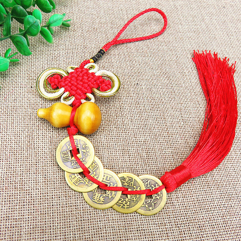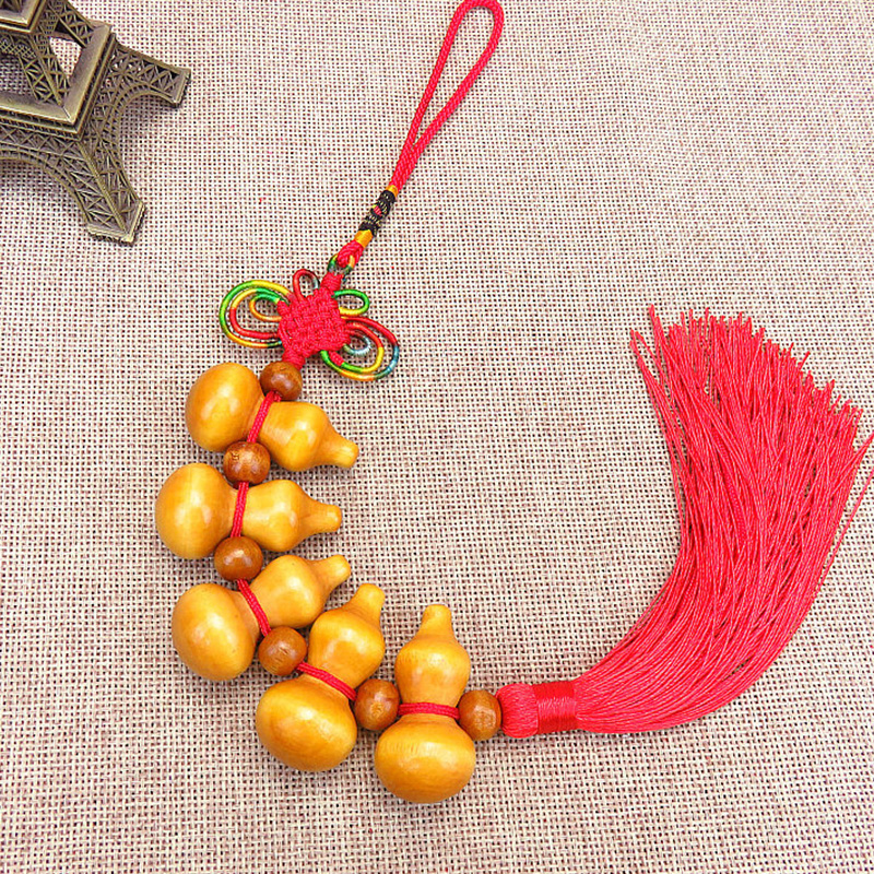 Peach wood gourd five emperor coins gourd Fengshui living room decoration Chinese style pendant Chinese knot auspicious jewelry car pendant