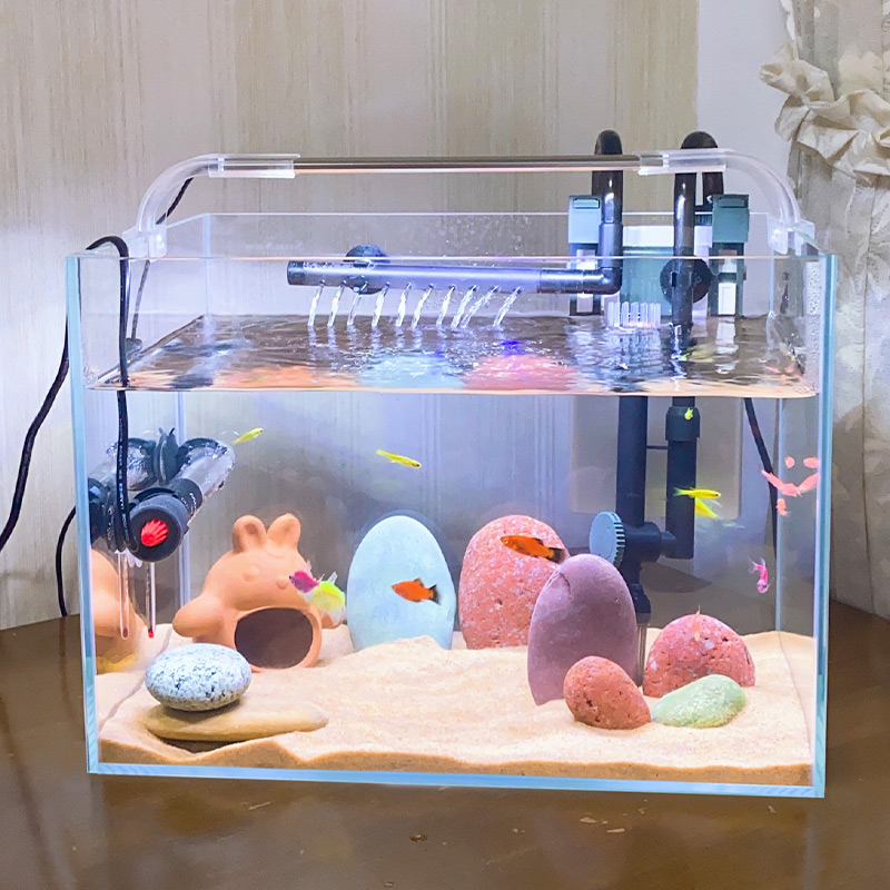 Aquarium landscaping gold crystal ultra-white glass living room small ecological aquarium medium-sized desktop tropical fish goldfish tank