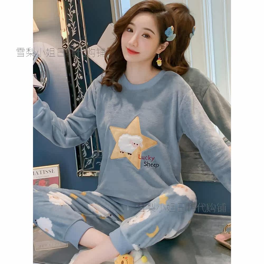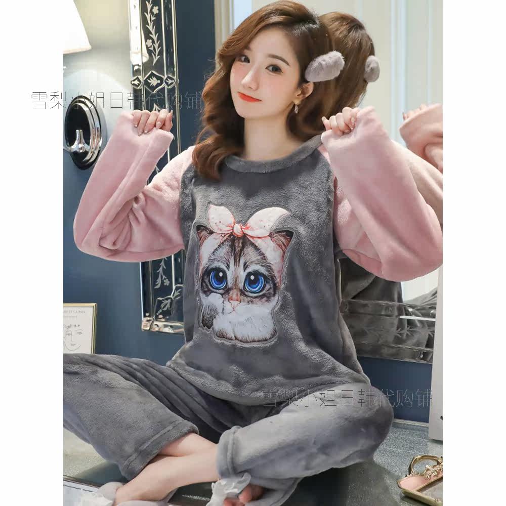 Japan GP autumn and winter cute cartoon pajamas women's flannel long-sleeved thick coral fleece warm home clothes suit