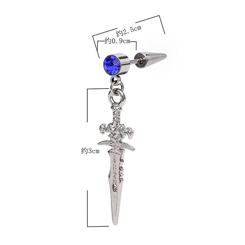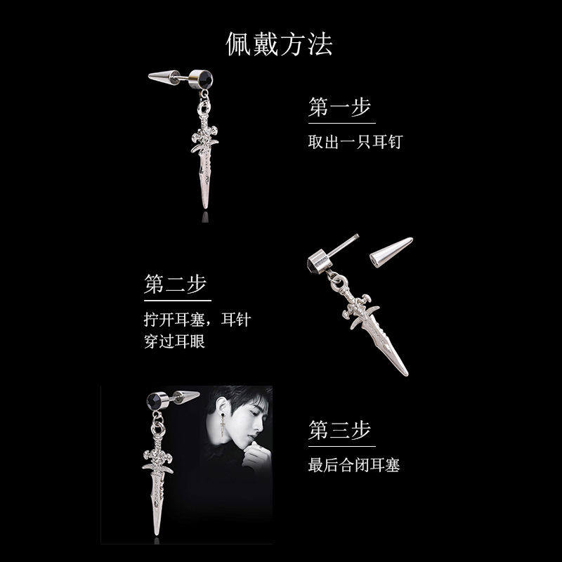 Pure silver Cool Sword Slain male Wang Yibo Lukewarm Breeze Lukewarm Breeze Small Crowdsourced High Level Personality Single Earrings Pendant Earrings