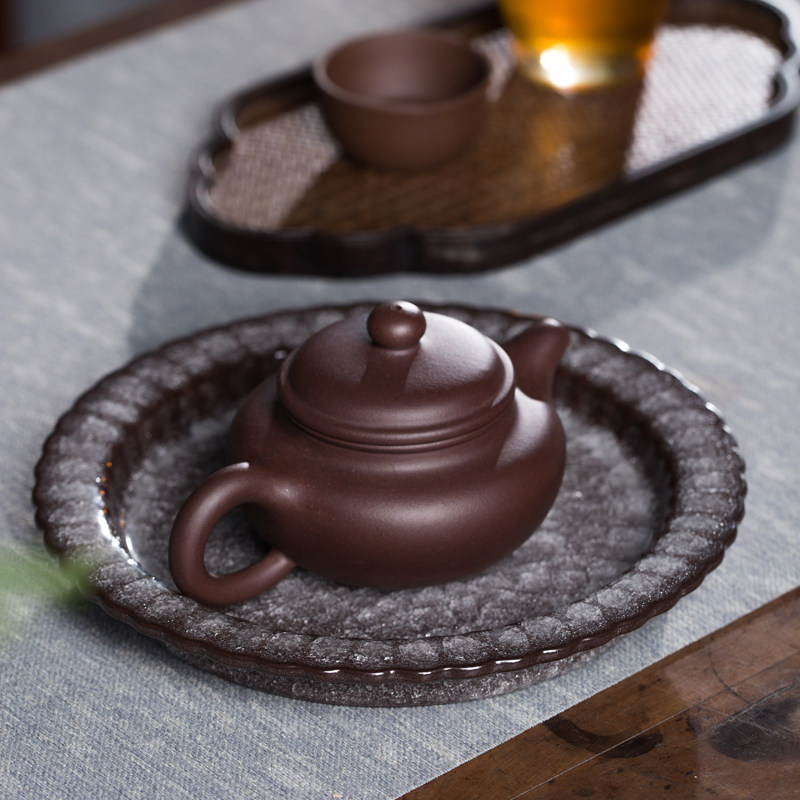 Hanqingtang Longquan celadon black tire brother kiln ice crack pot bearing ceramic dry brewing pot holder handmade kung fu tea set