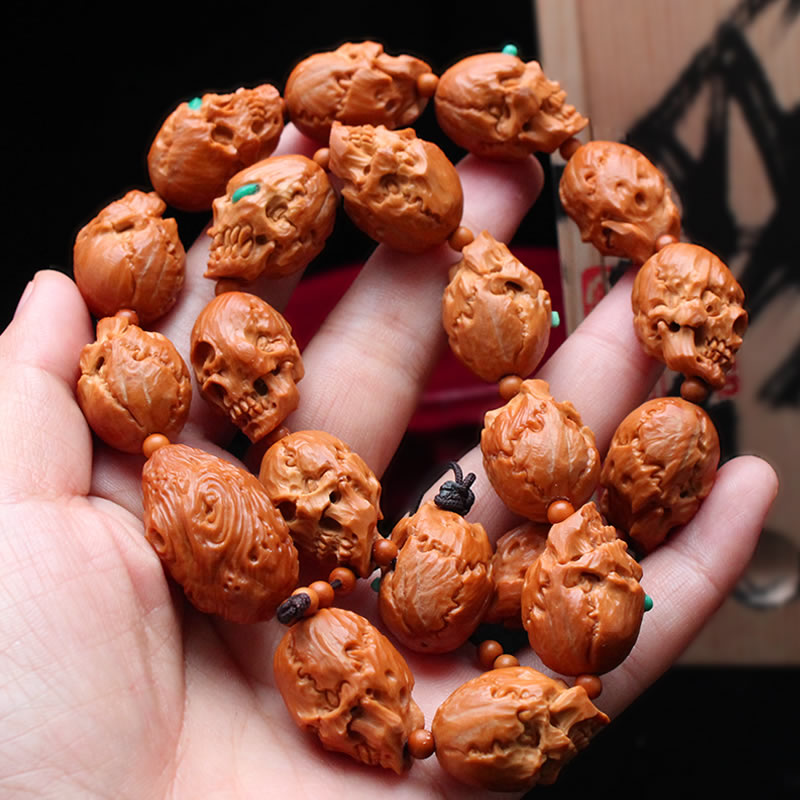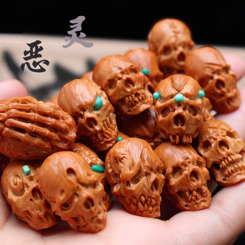 Suk olives nuclear carvings pure handmade carve skull head road pass by hand holding olive Hu evil spirits hanging long string of men and women