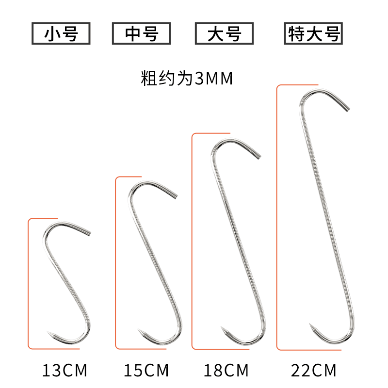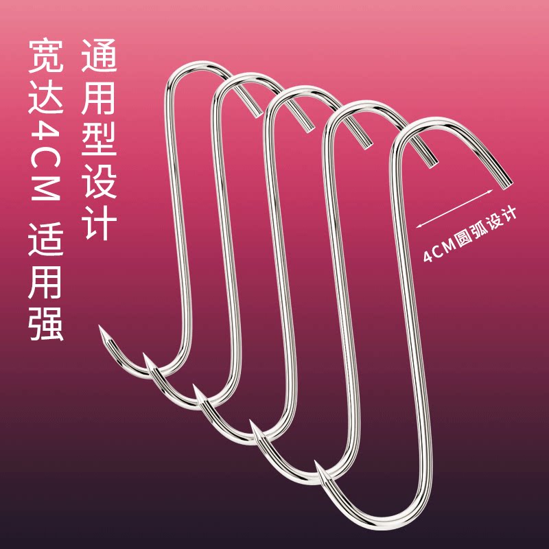 Stainless steel S-shaped hook bacon hook pointed sausage s hook broiler duck solid thick pork hook large