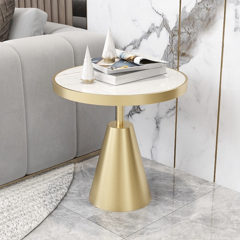Light luxury marble round side table modern net red hotel sofa Italian slate small coffee table simple creative corner table