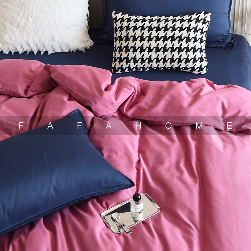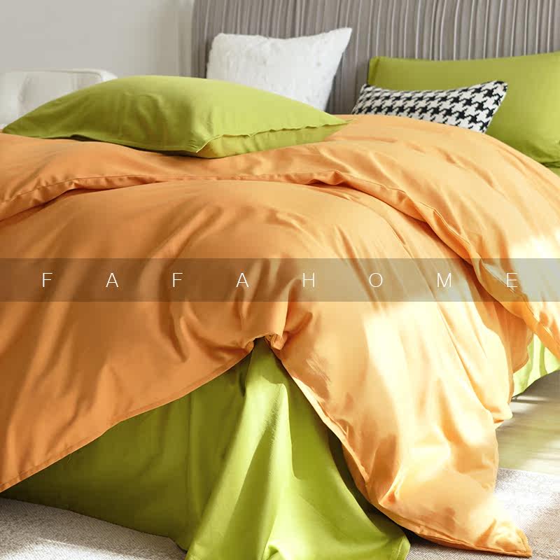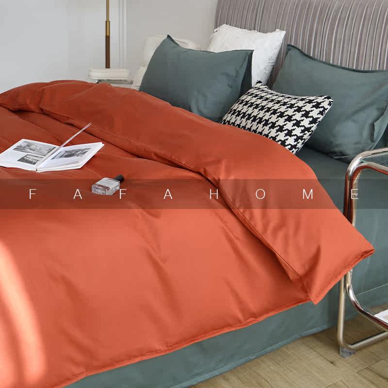 FAFAHOME 60-count pure cotton Xinjiang long-staple cotton washed satin four-piece set simple solid color bedding