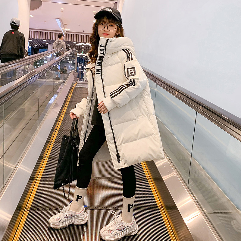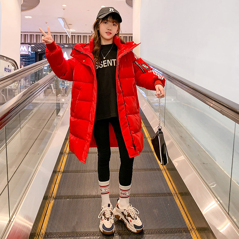 Girls' winter 2021 new cotton-padded clothes for big children, foreign style, thickened cotton-padded jacket, children's winter clothes, medium-length down cotton-padded clothes