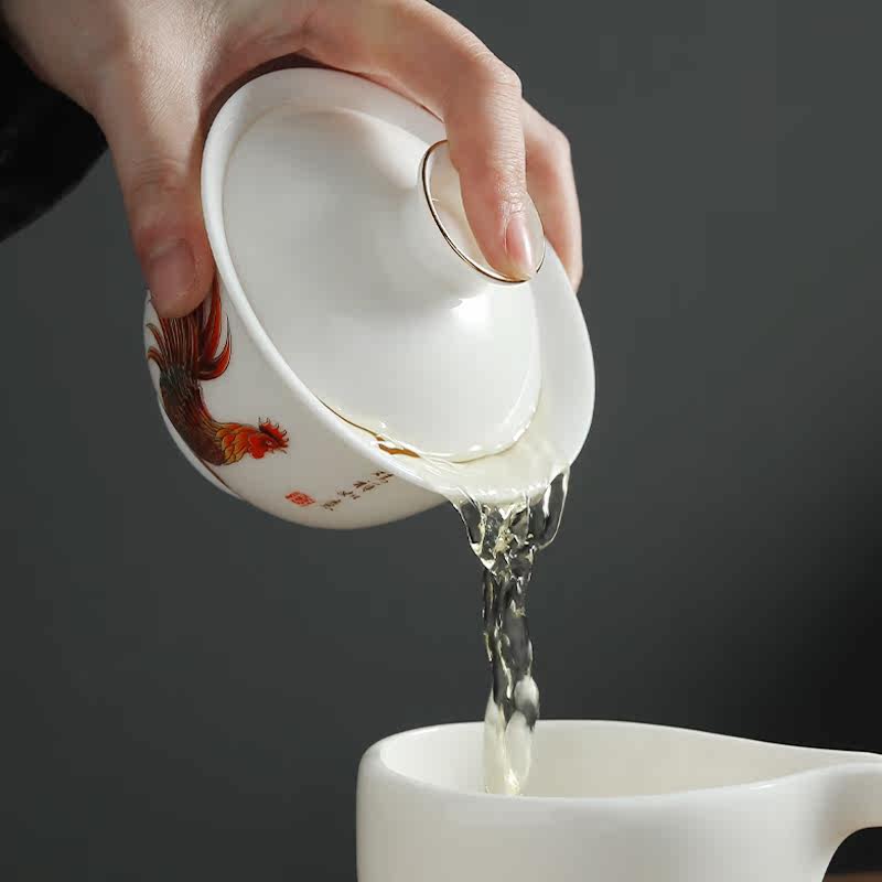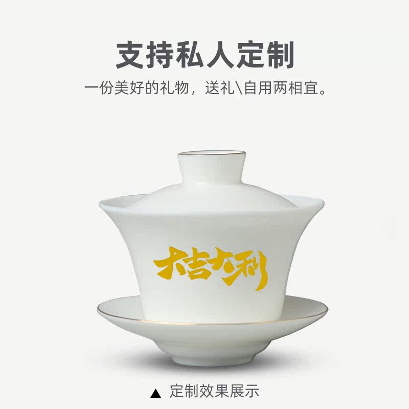 Su Tea Ceramic "Lucid Cover Bowl" three to cover a bowl of single amniotic jade white cup tea bowl household
