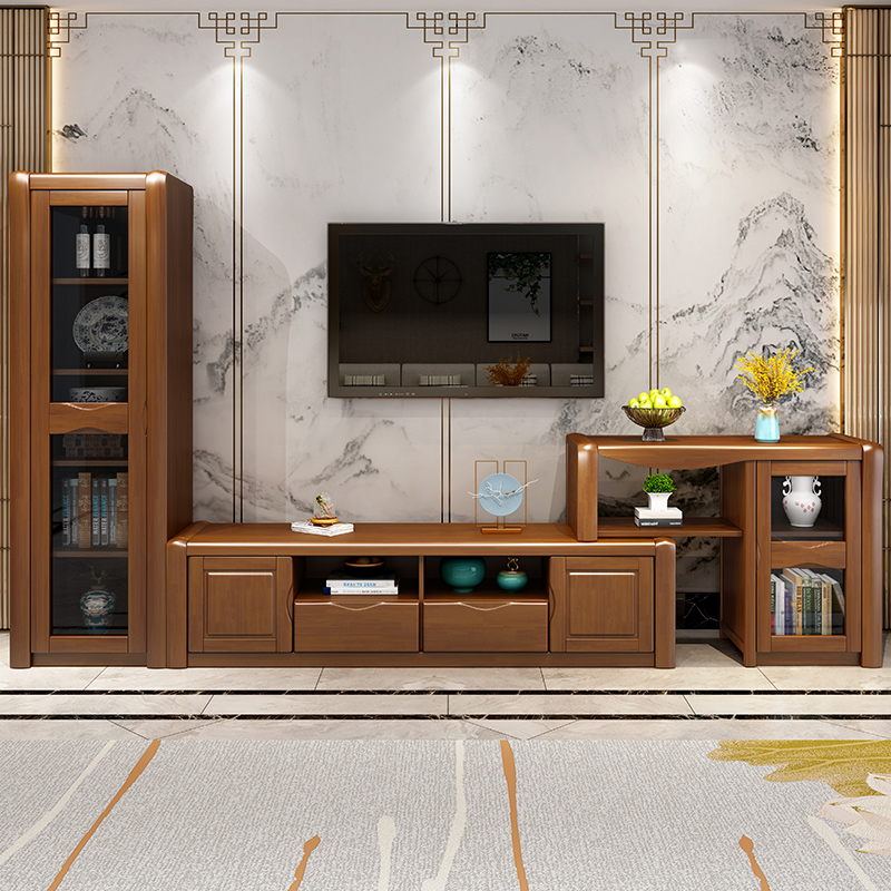 New Chinese solid wood TV cabinet small family type minimalist living-room telescopic cabinet bedroom storage ground cabinet film and TV cabinet storage cabinet