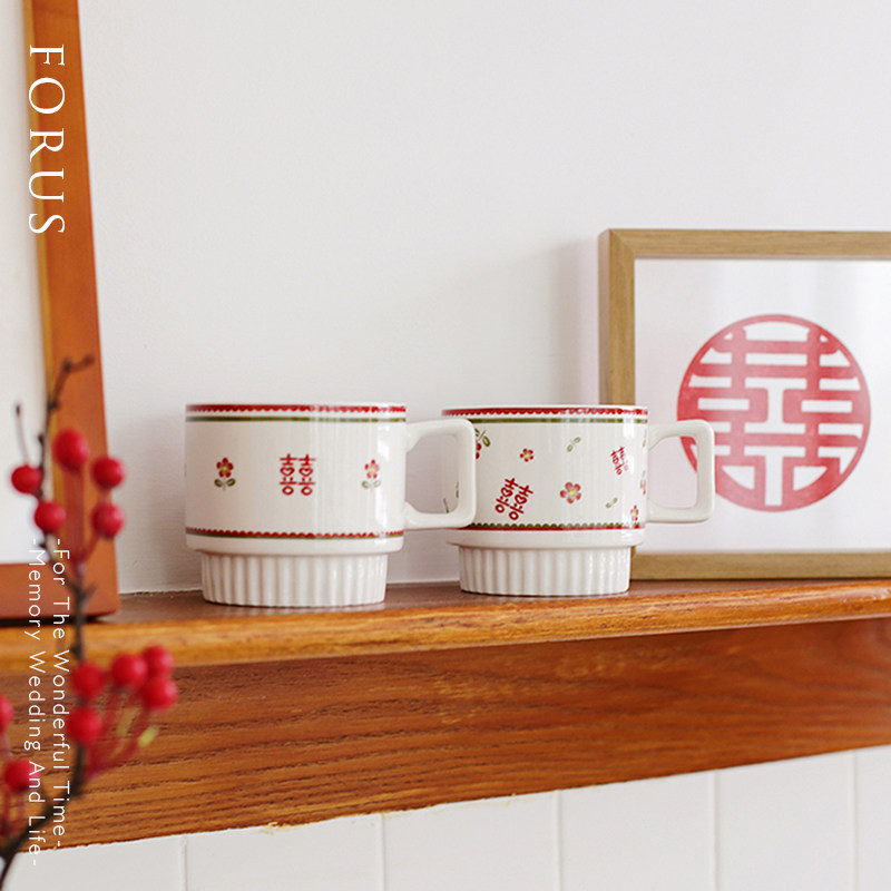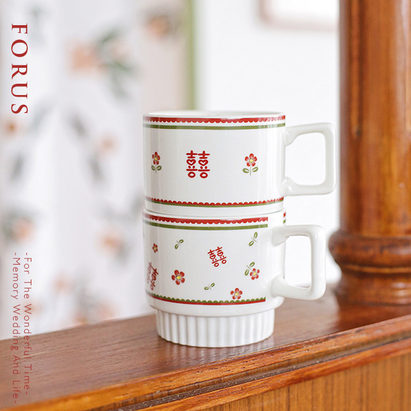 Wedding happy word cup wedding cups a pair of souvenirs ceramic mugs water cups to send newlyweds wedding gifts