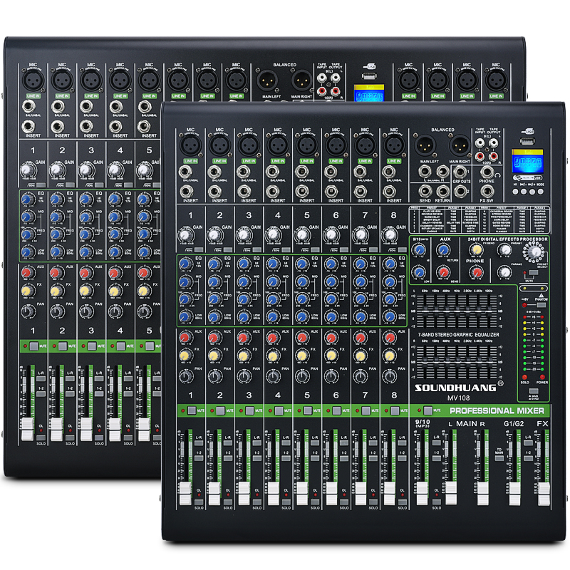 MV122-way stage with group performance wedding mixer home conference digital mixer effect with equalization