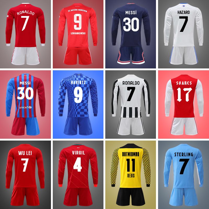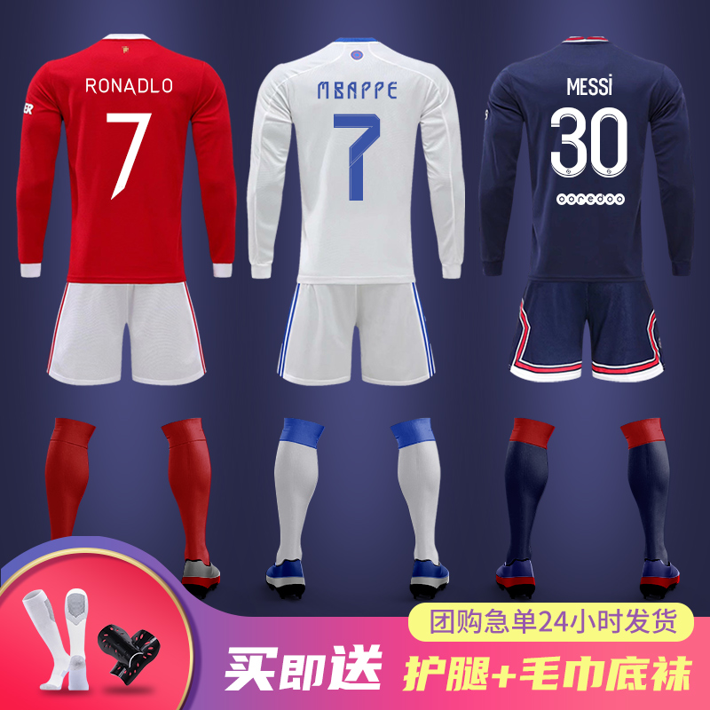 Long sleeve Chinese team football suit men's custom autumn and winter training to serve Real Madrid City horse race Messi Crow jersey