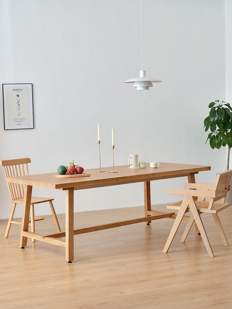 Nordic home rectangular solid wood dining table and chairs log dining table large board long table workbench living room combination
