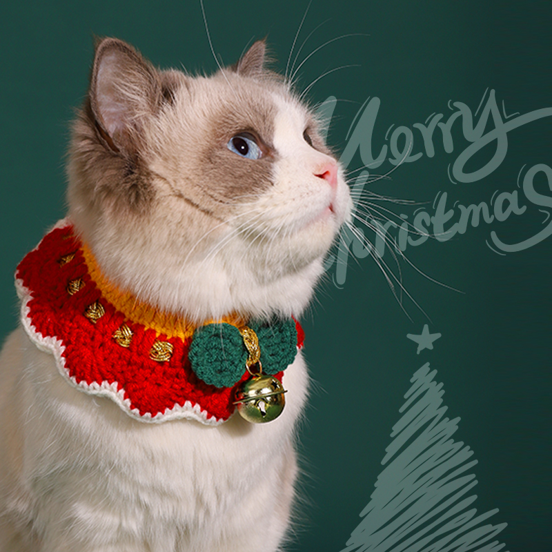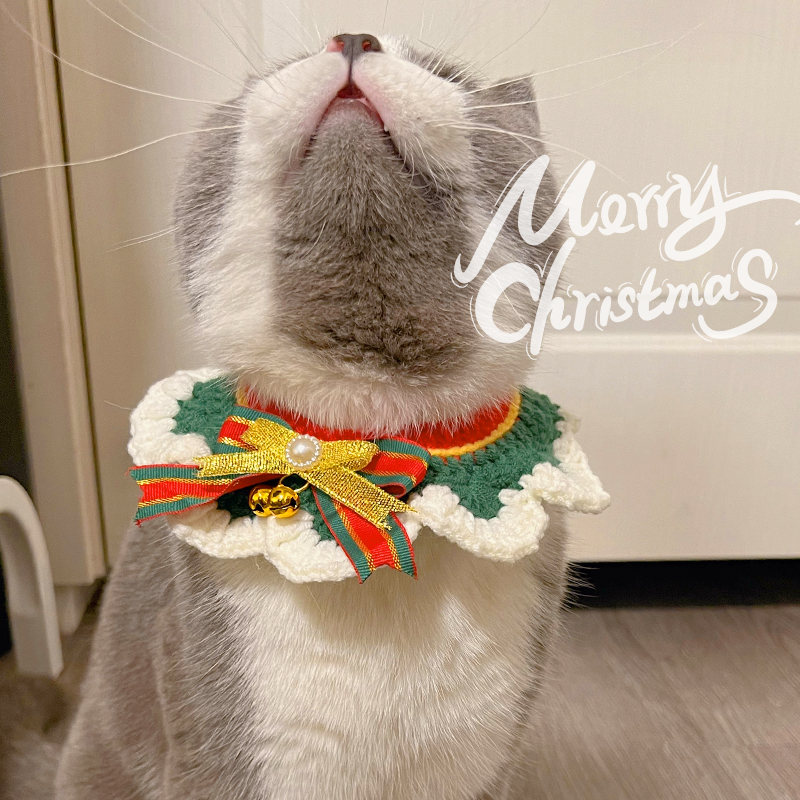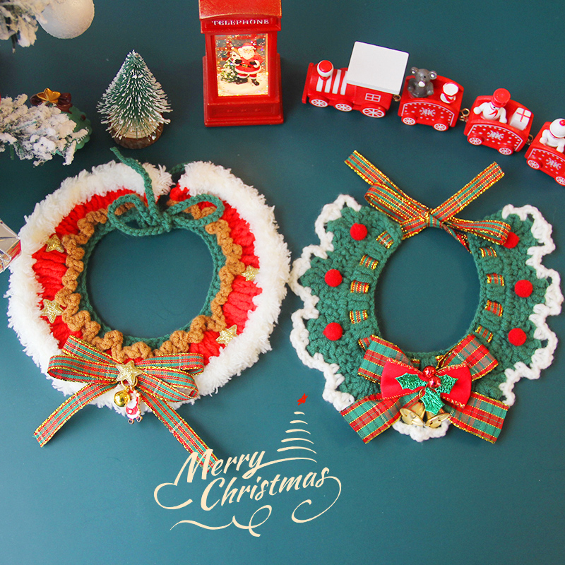 Cat Christmas scarf decoration pet wool hand-woven collar neck festive red festive bow dog