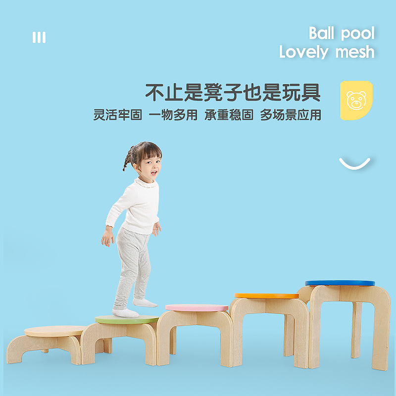 A set of wooden round stools (five)