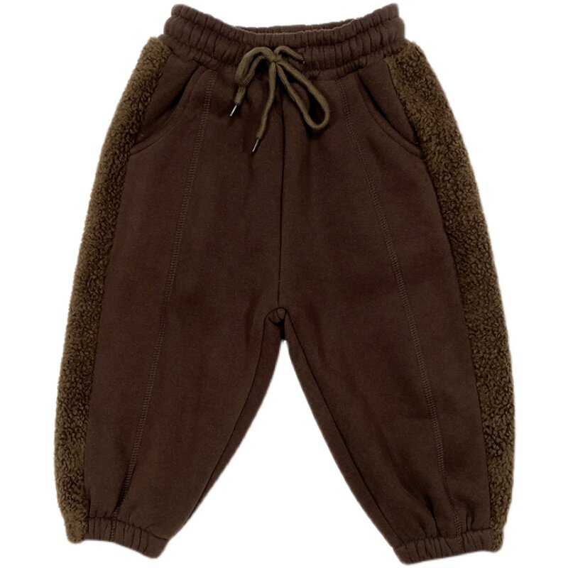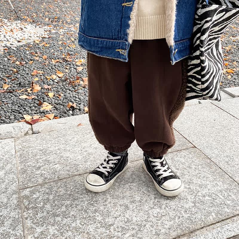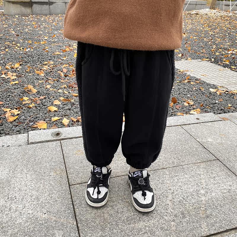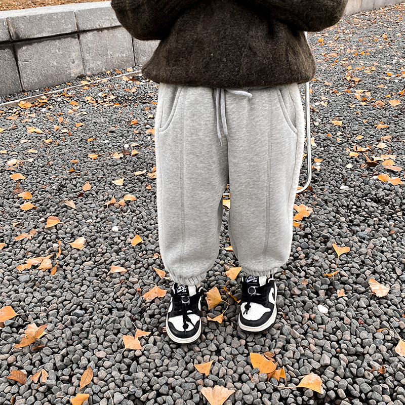 Boy autumn winter plus suede sports pants children fit 2021 new children thickened pants integrated suede baby casual long pants