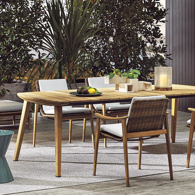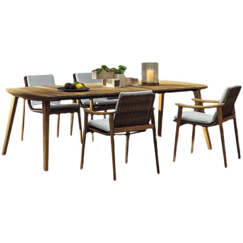 Nordic outdoor solid wood table and chair combination outdoor courtyard garden leisure rattan chair hotel bed and breakfast open-air teak long table