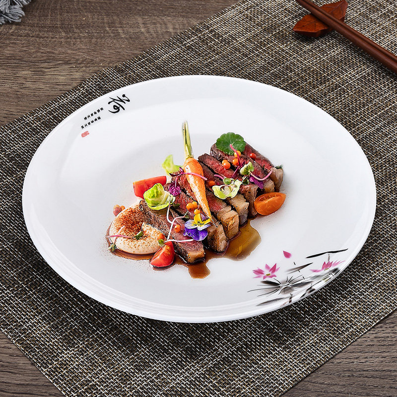 Top Gometamide Resin Plate Disc Imitation Porcelain Tableware Plastic Tray Commercial Round Bone Disc dinner plate thickened high temperature resistant