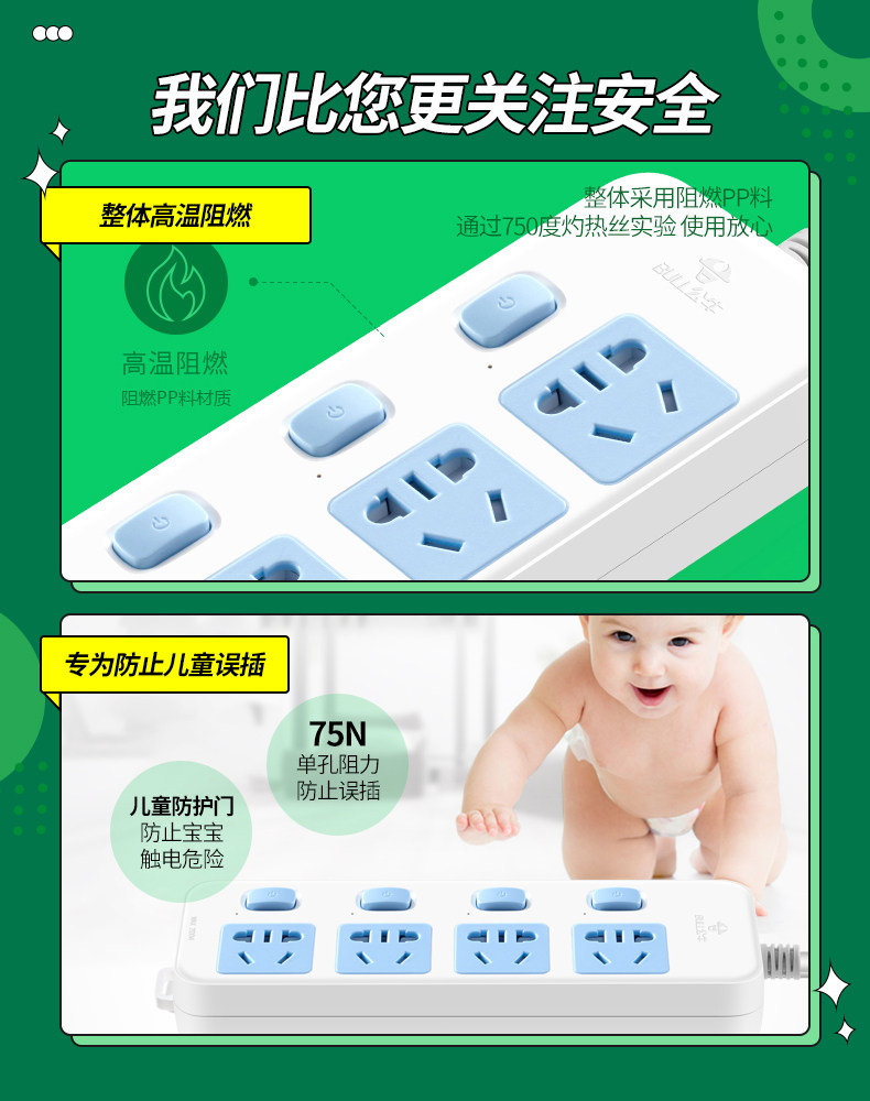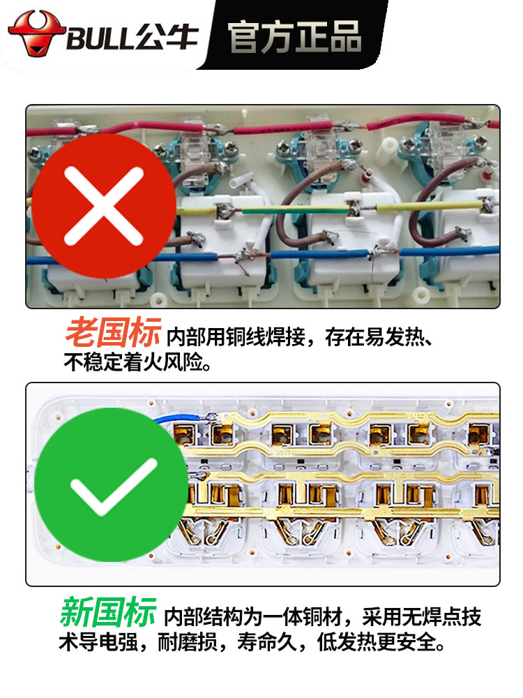 Bull Socket Inserted Platoon Multi-Inserted Extension Line Dormitory with the official flagship of the Bulls flagship store