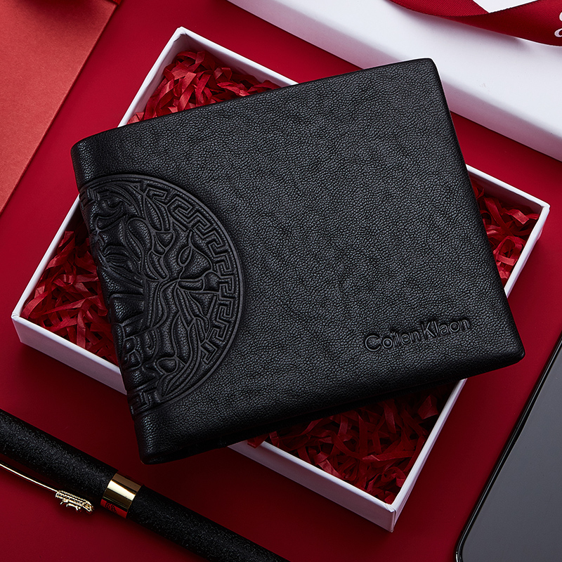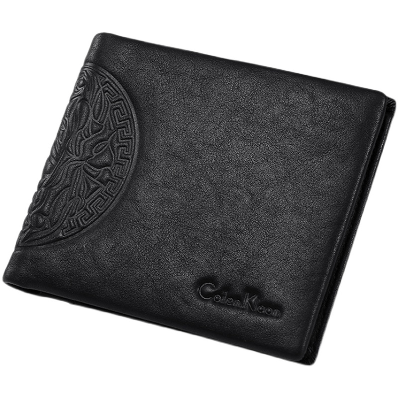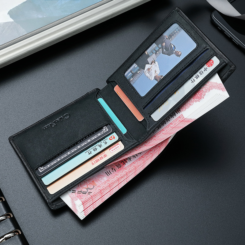 CoilenKlaon wallet Male genuine leather short Tide Cards 2021 New Head Layer Bull Leather Slim multi-position leather clip