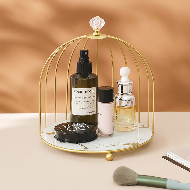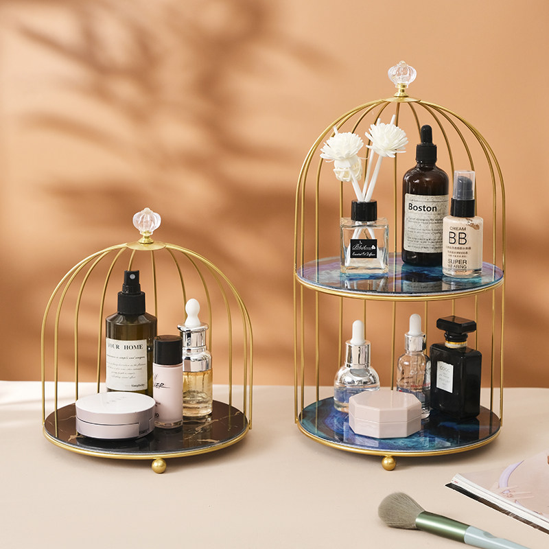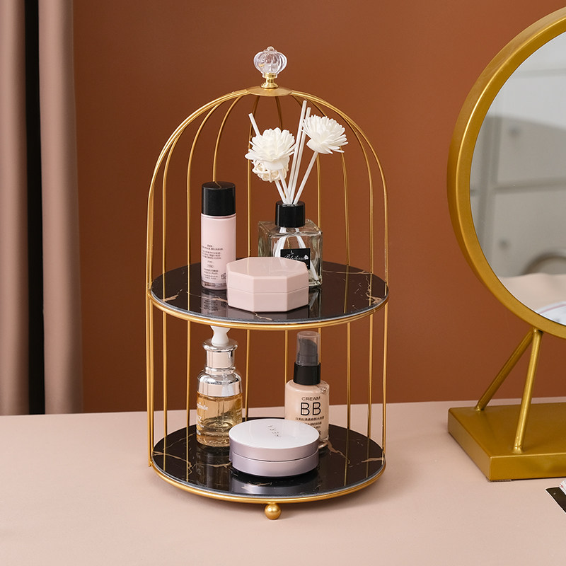 Net red light luxury desktop storage box dressing table perfume skin care products double birdcage cosmetics rack powder room