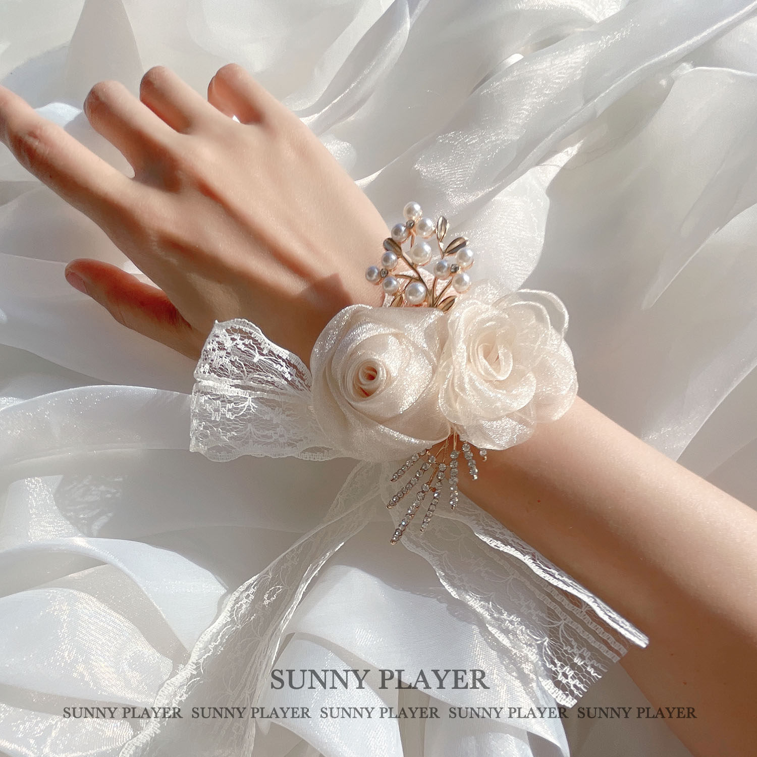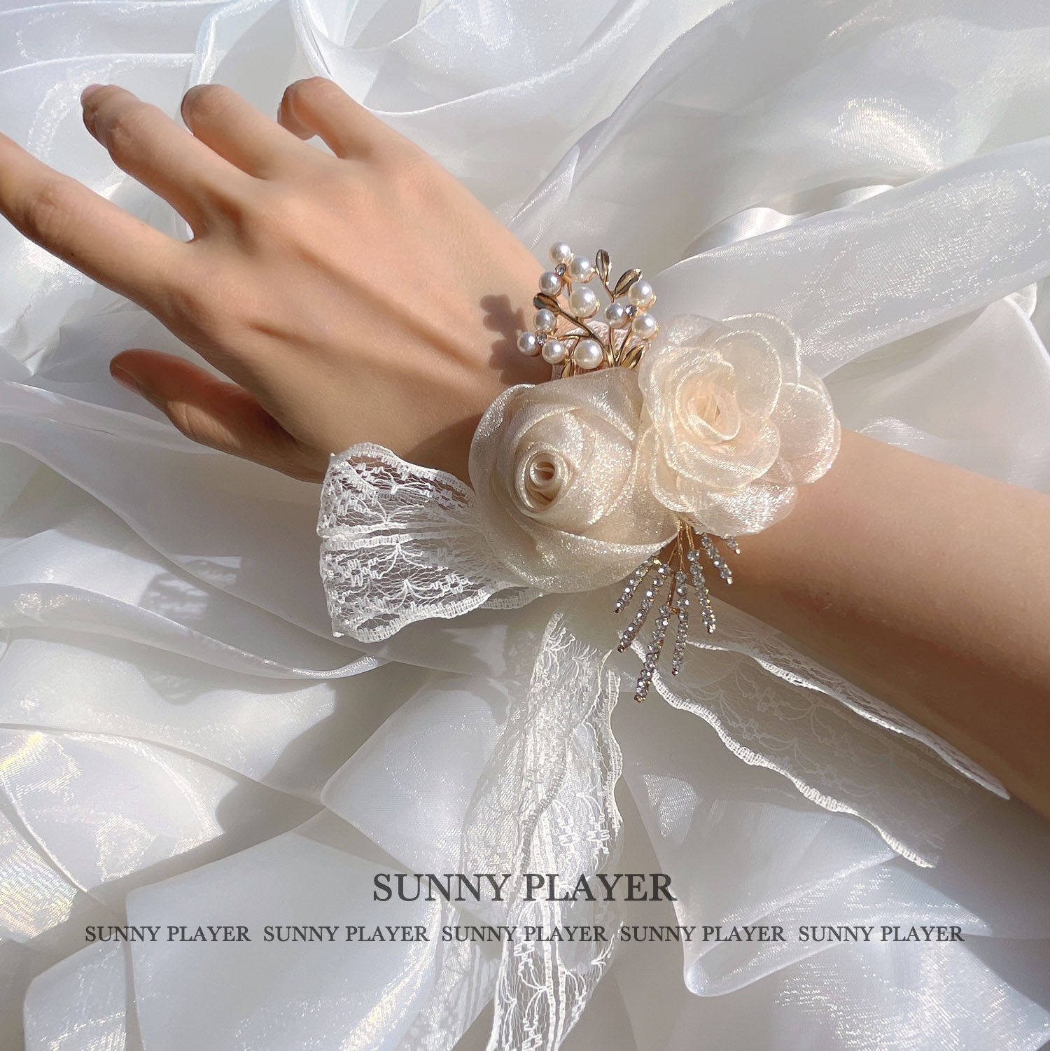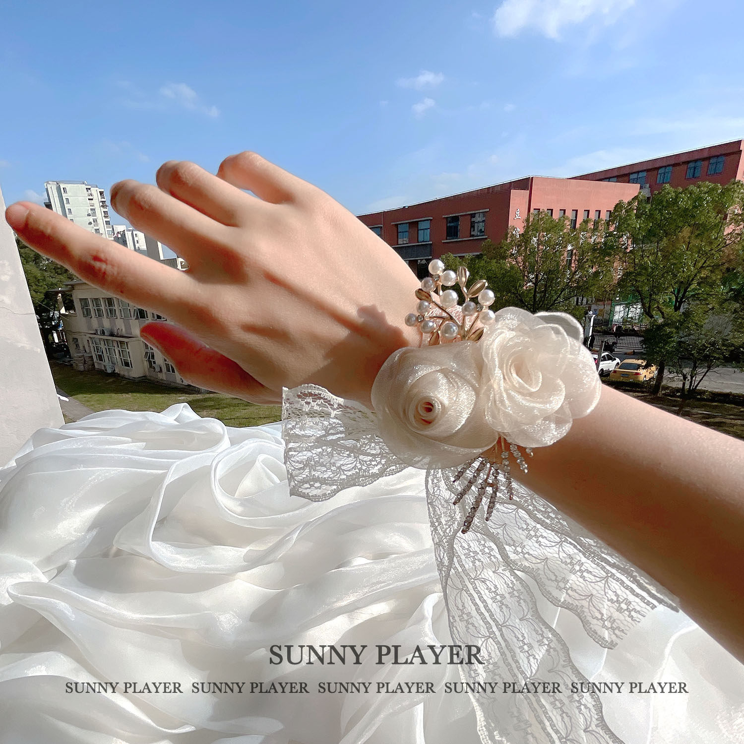 Wristflower married bridesmaid luxury lace white ribbon wristband wristband wristband sister group hands