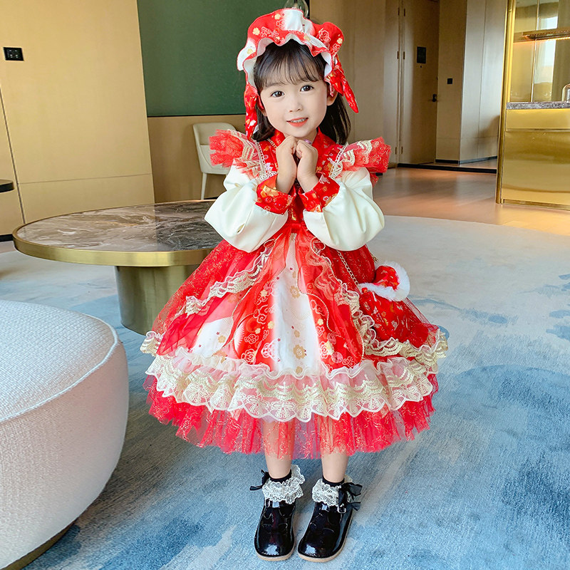 Roleita girl's dress for autumn and winter thickened children's dresses winter style plus suede baby princess nepotism dress